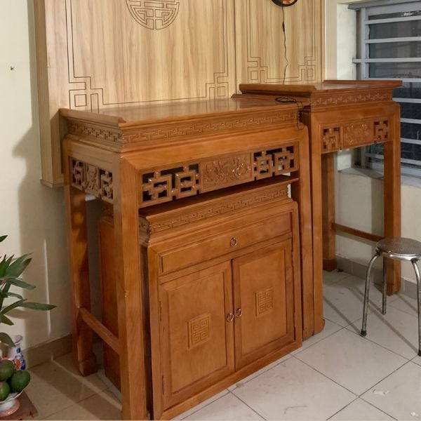 Bàn thờ gia tiên GỖ SỒI kèm đôn/ tủ