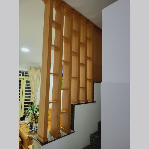 Vách ngăn-lam gỗ cầu thang được sử dụng để ngăn cách khu vực cầu thang với các khu vực khách trong phòng, đồng thời làm cho ngôi nhà trở nên đẹp và có điểm nhấn hơn. Vách ngăn này thường được dùng cho những ngôi nhà có sử dụng thang bộ như nhà phố, nhà tầng hay biệt thự.