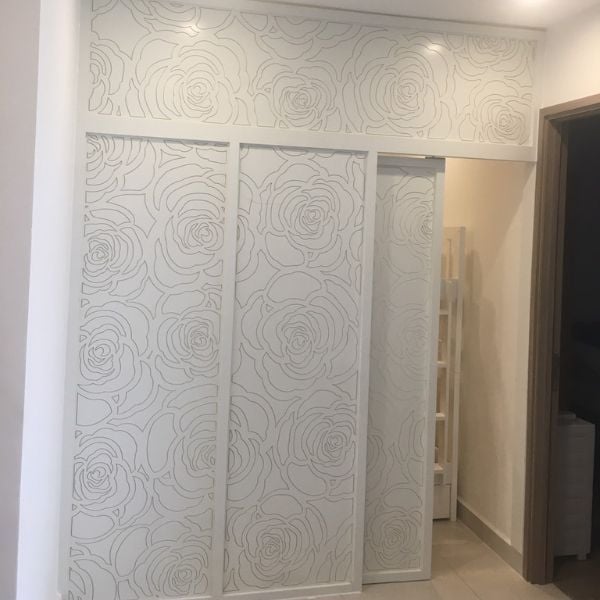 - Vách kéo ngăn phòng là giải pháp phù hợp để làm cho căn phòng trông rộng hơn so với cửa bản lề đóng mở. Ngoài việc làm cho ngôi nhà thêm rộng rãi, vách ngăn cửa trượt cnc còn giúp phân cách không gian nhà và tạo điểm nhấn bằng họa tiết hoa văn bắt mắt.