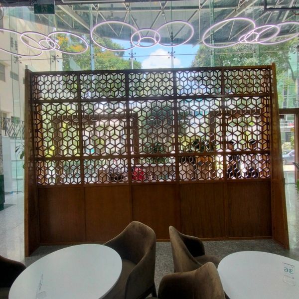 Vách ngăn cnc kết hợp lam gỗ