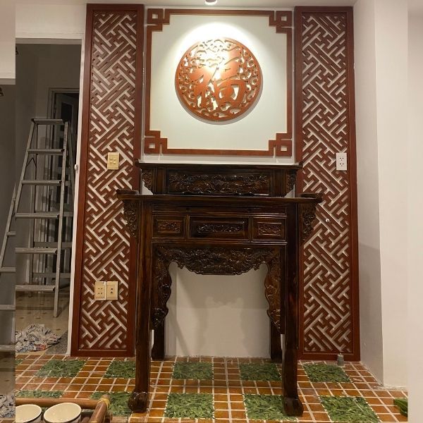 Vách ngăn phòng thờ trong ứng dụng thực tế.
