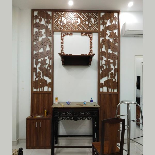 Vách ngăn phòng thờ trong ứng dụng thực tế.