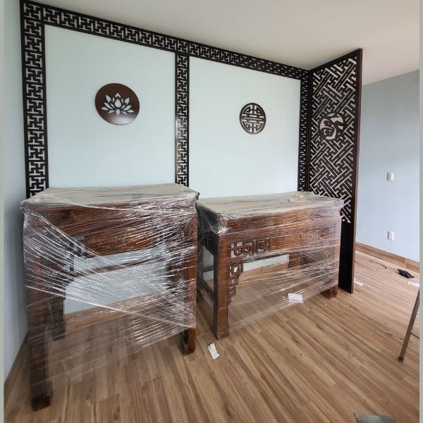 Vách ngăn phòng thờ trong ứng dụng thực tế.