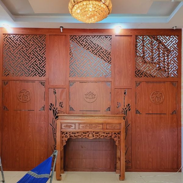 Vách ngăn phòng thờ bằng gỗ