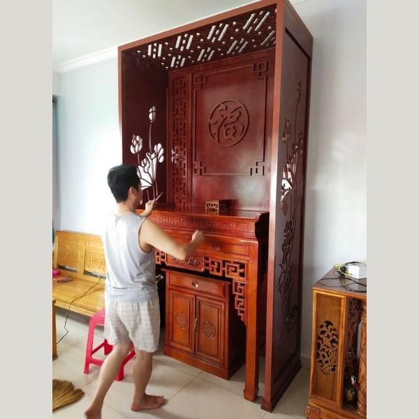 Vách ngăn phòng thờ trong ứng dụng thực tế.